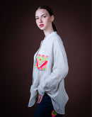 Chemise Pocketwave Chahdy – Écru & broderie poitrine artisanale