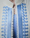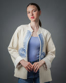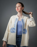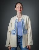 Veste artisanale Chahdy – Crème & broderie bleue fait main