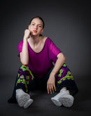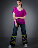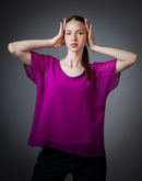 Blouse Joudia Indigo – Blouse aérienne à la coupe ample et au tissu fluide, sublimée par une teinte fuchsia vibrante.